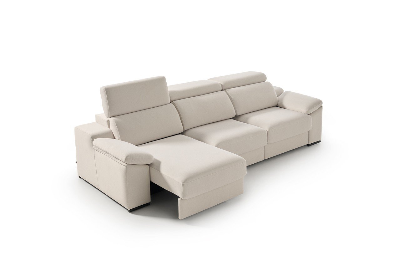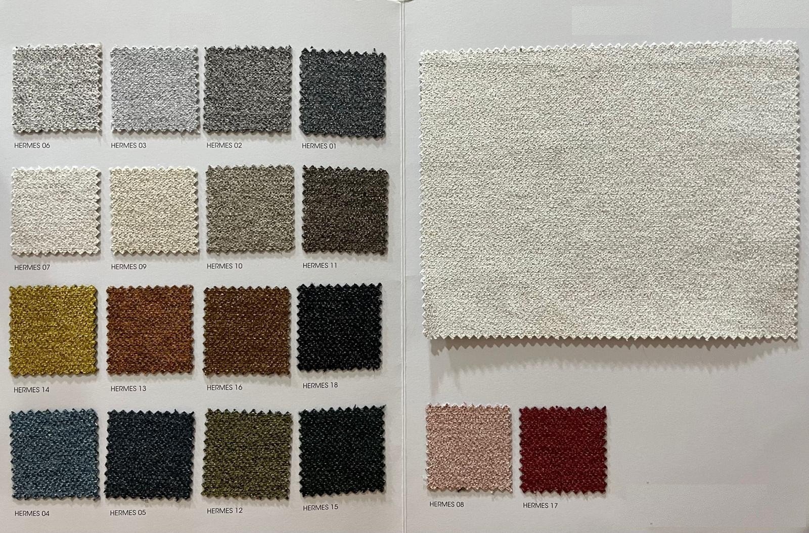 Brazo contenedor de serie. Patas metálicas cromo. Disponible en diferentes telas y colores.