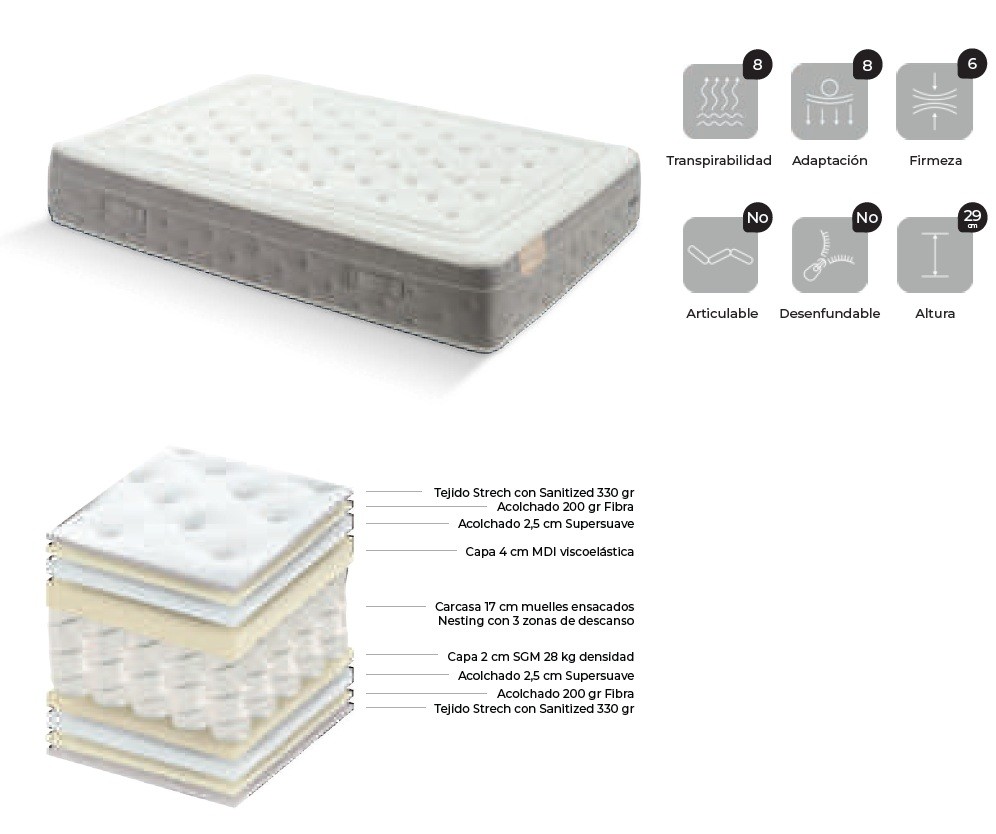 COLCHÓN MUELLE ENSACADO + VISCOELÁSTICA.