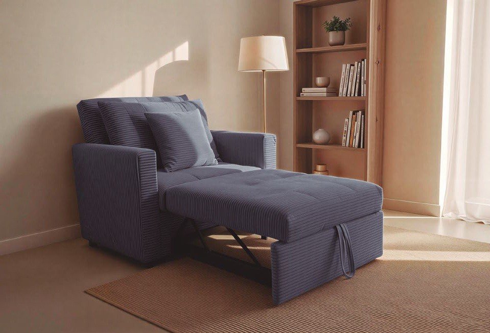 SOFÁ DE 1 PLAZA TAPIZADO CONVERTIBLE EN CAMA DE 80X197 CM.