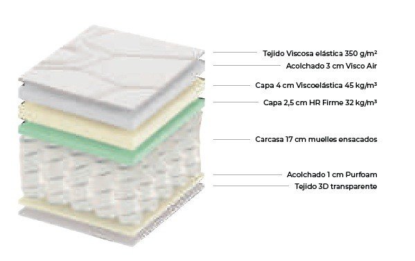 COLCHÓN MUELLE ENSACADO + VISCOELÁSTICA.